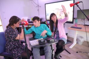 Derwen student Timothy enjoys using SoundBeam technology to create music and sound